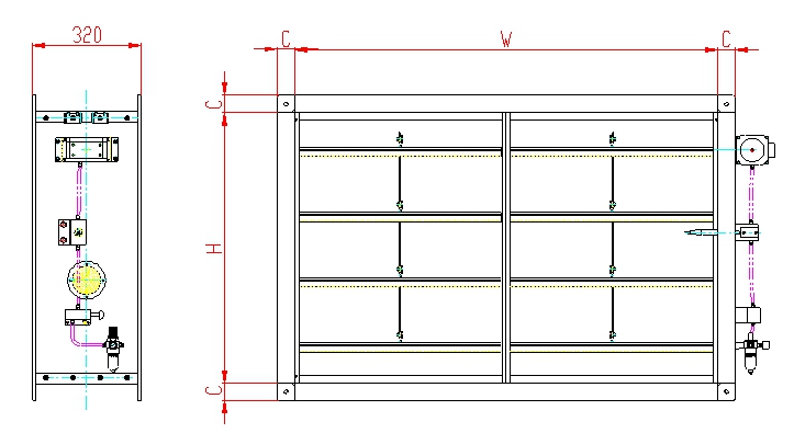 W×H配合风管尺寸,法兰尺寸与国标GB50234-2002中金属矩形风管的法兰相同。